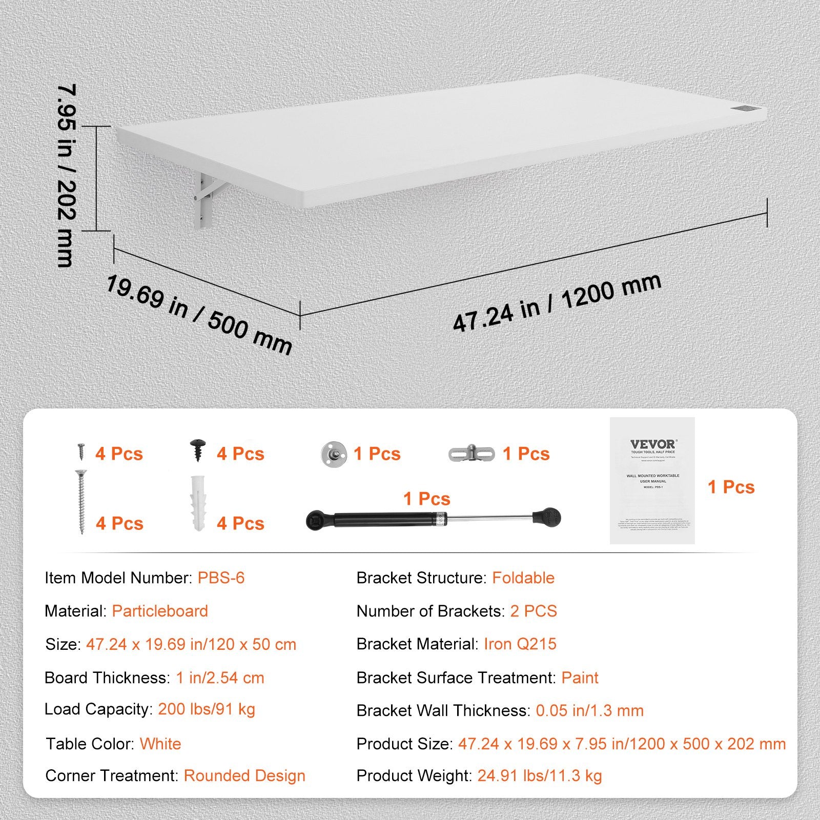 90 kg Tragkraft: Trotz seiner kompakten Größe kann dieser wandmontierte Schreibtisch dank seines dicken 2,5 cm starken Materials bis zu 90 kg tragen. Er bietet Stabilität für alles, von kleinen und großen Werkzeugen über Laptops und schwere Bücher bis hin zu Dekorationsgegenständen und sorgt dafür, dass alles stabil bleibt.