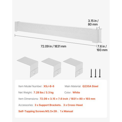 Standardstorlek: Detta 1831 mm långa golvvärmeskydd passar värmare med avstånd mellan golv och bakplattans topp: 18–24 cm, avstånd mellan elementets botten och bakplattans topp: 14–17 cm, och ett avstånd mellan bakpanel och elementets framsida på mindre än 8,6 cm.