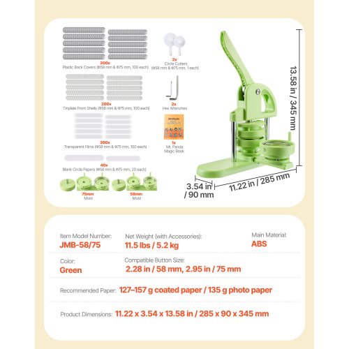 2-in-1-Design: Unsere Buttonmaschine umfasst 2,28 und 2,95 Zoll große Buttonteile. Sie können Buttons in verschiedenen Größen erstellen und so das häufige Problem der Größenabweichung beim Materialwechsel lösen. Dies sorgt für ein besseres Benutzererlebnis und kreative Flexibilität.