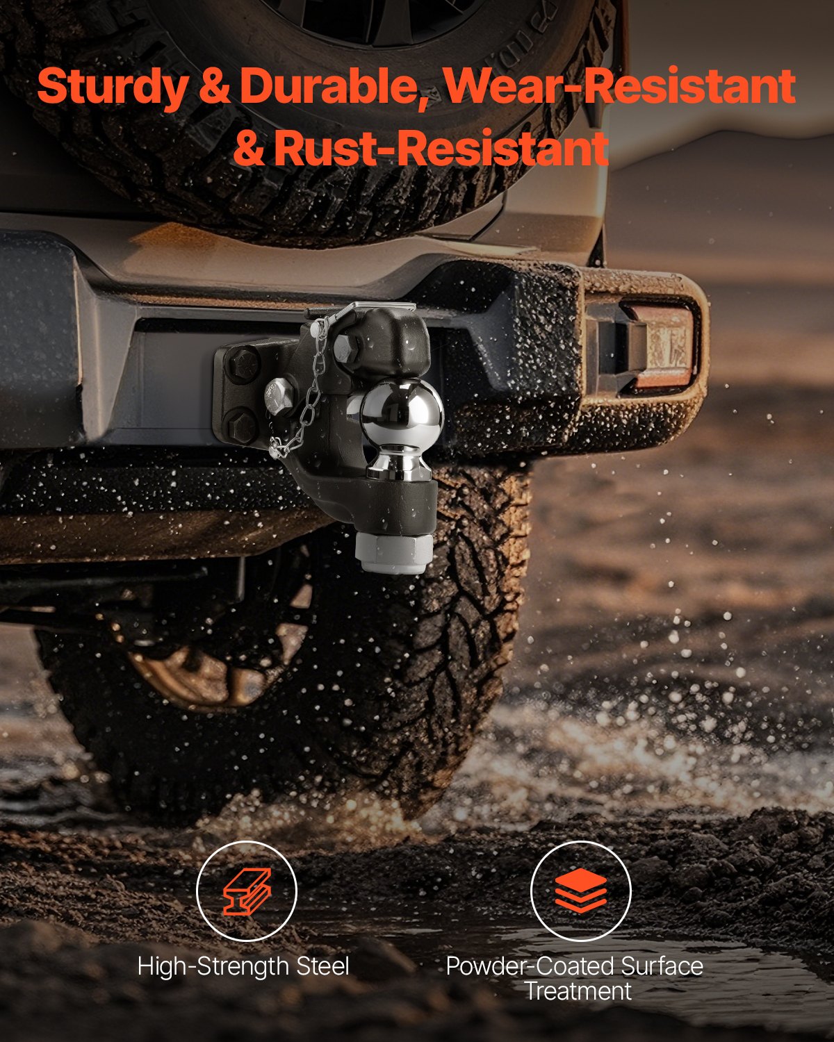 Hohe Tragfähigkeit: Unsere Bolzenkupplung kann Zuglasten von bis zu 13.600 kg bewältigen und hat eine vertikale Tragfähigkeit von 2740 kg. Sie verfügt über eine Kugelgröße von 6,35 cm und kann an 6,35 bis 7,65 cm große Lünetten angeschlossen werden. Dies erleichtert den Transport schwerer Geräte und Ladung.