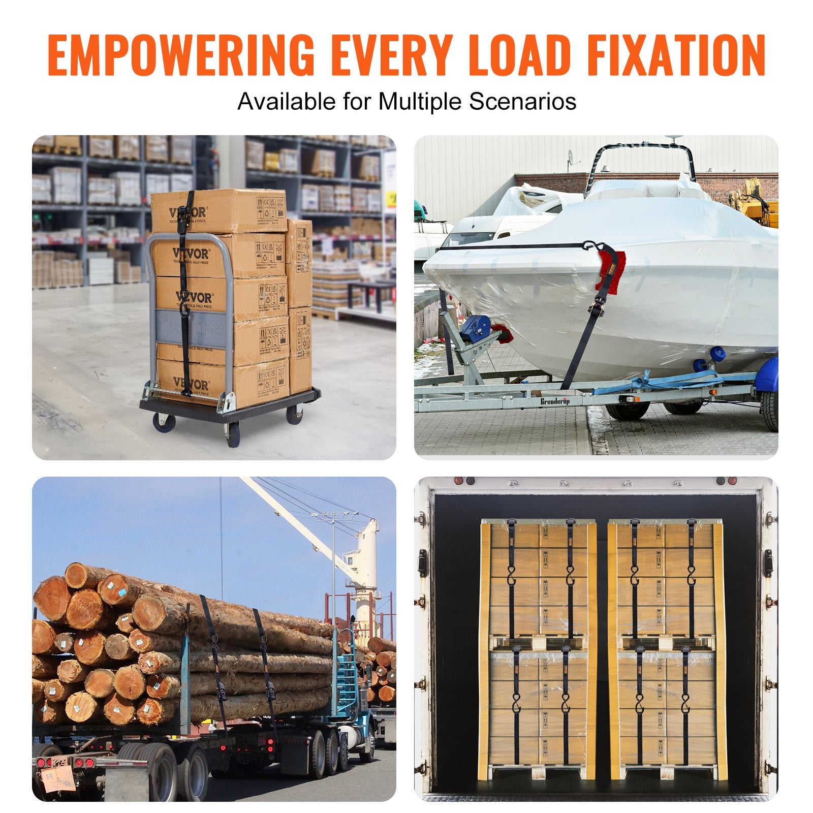 Vielseitige Anwendung: VEVOR-Spanngurte bieten dauerhafte und zuverlässige Sicherheit für den Transport einer Vielzahl kleiner und großer Gegenstände, einschließlich Motorrädern, Kanus, Kajaks, Geländefahrzeugen, Kisten, Booten, Möbeln, Rasenmähern, schweren Maschinen und anderer Fracht auf LKWs, Anhängern oder Dachgepäckträgern.