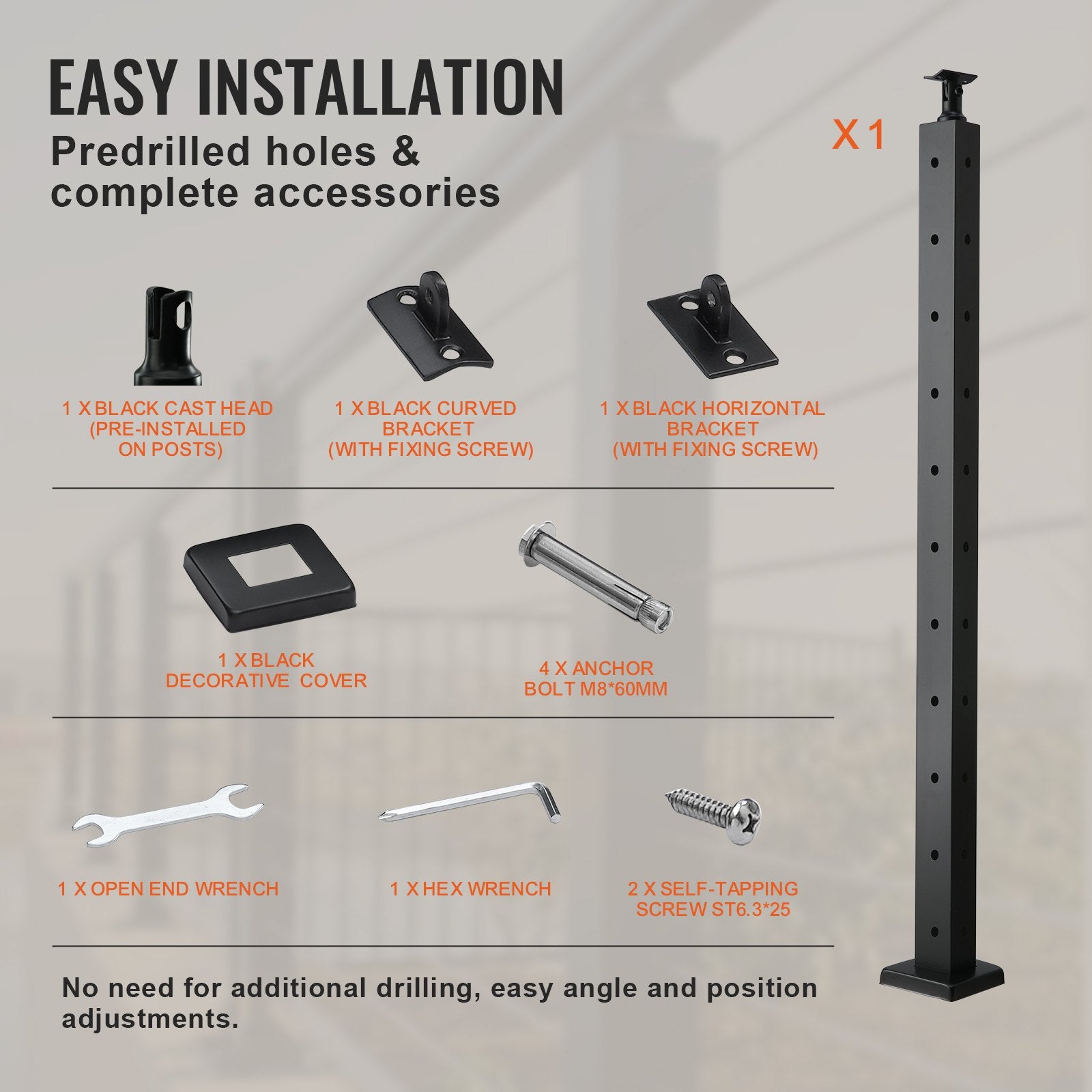 Sturdy and Durable: The handrail post is made of high quality SUS304 stainless steel, which provides excellent rust resistance and corrosion resistance, ensuring a long service life. However, we do not recommend it for coastal projects.