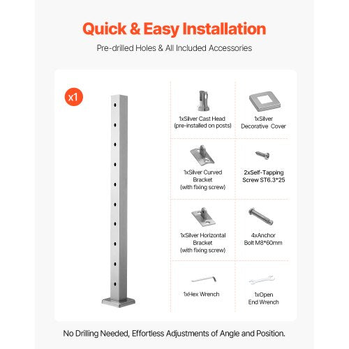 Horizontal Hole Railing Post: This horizontal hole railing post is available in heights of 40" and 36" with 1/2" and 1/4" holes, totaling 10-12 holes. It is designed for horizontal protection of ground/deck railings, keeping you and your family safe. Note: This product does not include wires.