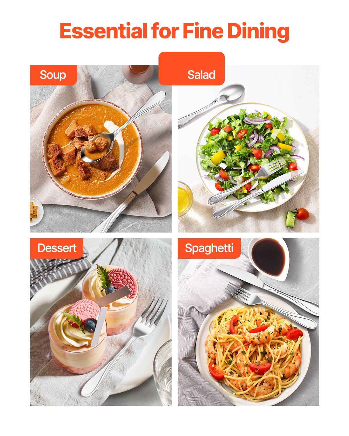 High-quality stainless steel: Made of premium 18/10 stainless steel, this cutlery set is durable, corrosion-resistant and rust-proof with excellent balance. The smooth design ensures comfort during use. Dishwasher safe and perfect weight, it is designed for long-term use