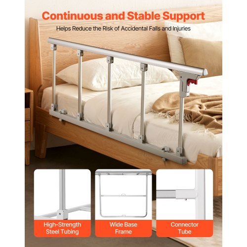 Hopfällbar design: När den inte används, tryck på den röda knappen för att fälla ner sängskenan. Denna design hindrar inte i eller ur sängen och minskar stötar eller snubbelrisker. Passar dubbelsängar, queen size-sängar och king size-sängar med madrasser på 178–330 mm. Inte för elektriska sängar.