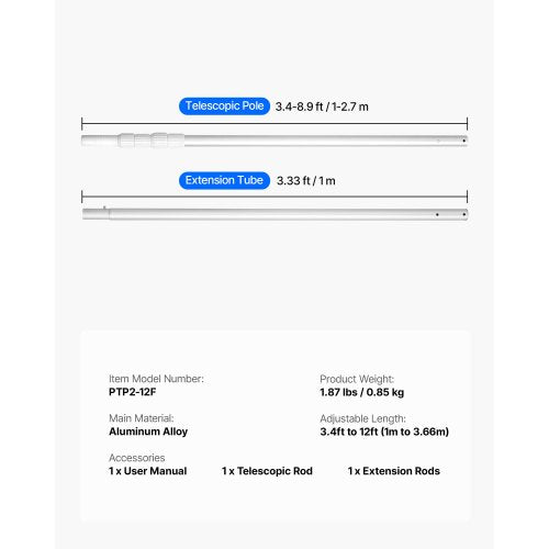 Justerbar längd: Denna poolstång sträcker sig från 1 till 3,65 m, perfekt för rengöring av både grunda och djupa områden. En stång för flera användningsområden.