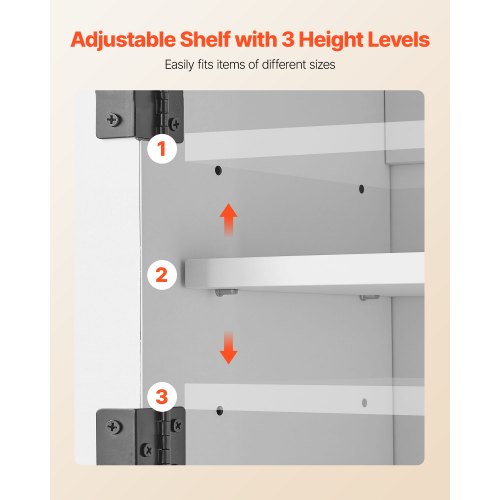 Justerbar hylla: Det väggmonterade badrumsskåpet har en justerbar hylla med 3 höjdnivåer, utformad för att fritt kunna anpassas till föremål med olika höjder. Flexibel layout möter olika förvaringsbehov och maximerar utnyttjandet av badrumsutrymmet.