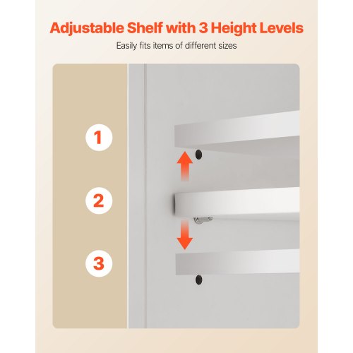 Justerbar hylla: Det väggmonterade badrumsskåpet har en justerbar hylla med 3 höjdnivåer, utformad för att fritt kunna anpassas till föremål med olika höjder. Flexibel layout möter olika förvaringsbehov och maximerar utnyttjandet av badrumsutrymmet.