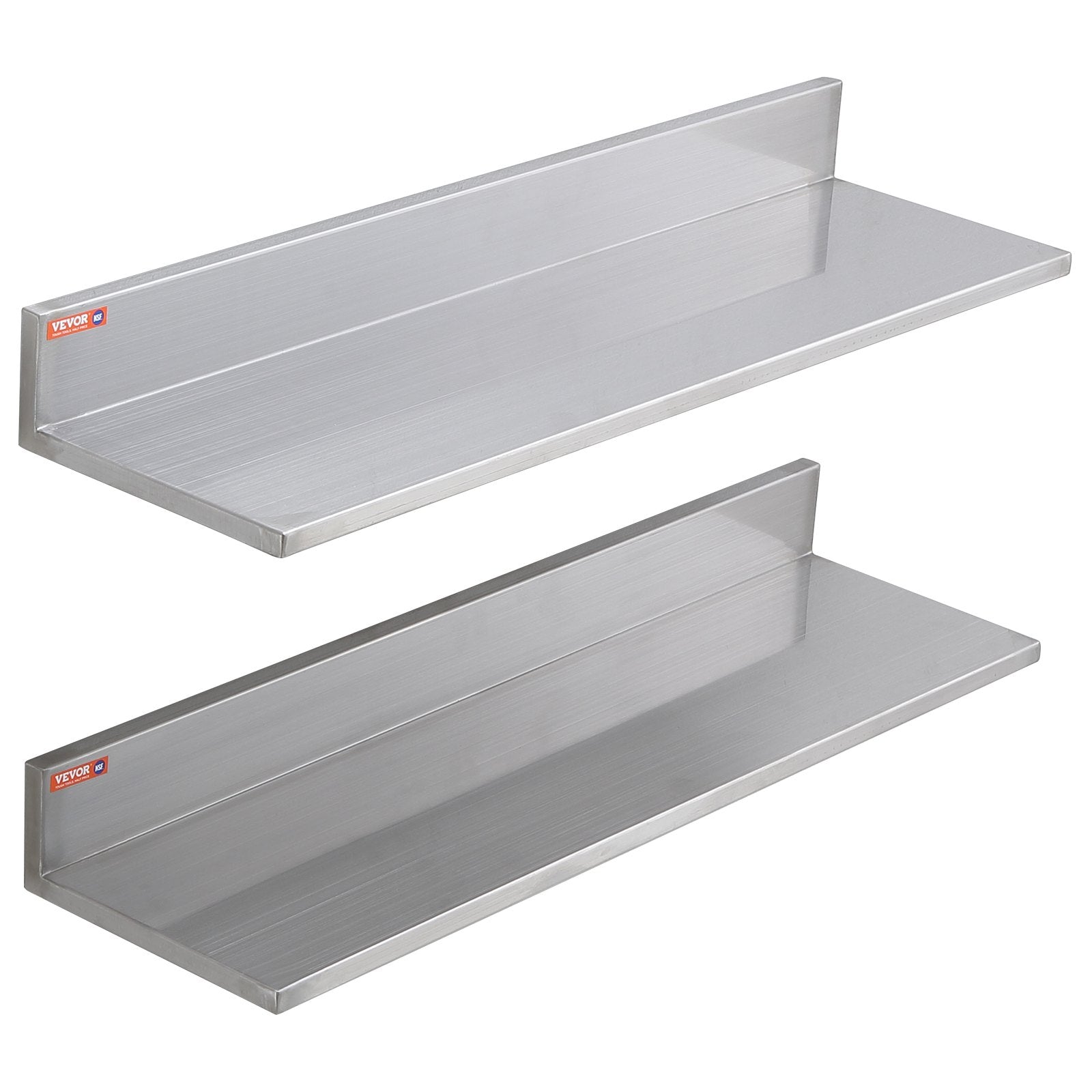 Solid and Sturdy Construction: Our wall-mounted shelf is made of NSF-certified 430 stainless steel, ensuring durability and easy cleaning. The surface has a brushed finish, built to resist daily scratches, corrosion, and stains. So don't worry about food and liquid spills ruining your surface.