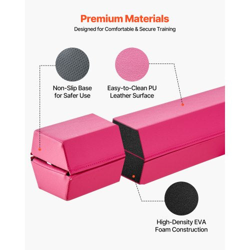 8FT Hopfällbar Balansbom för Barn, 90,7 KG Stabil Stöd Gymnastik Golvbom med Halkfria Mattor, Gymnastikträningsutrustning med Halkfri Botten och Bärväska för Hemmagym, Rosa | EU