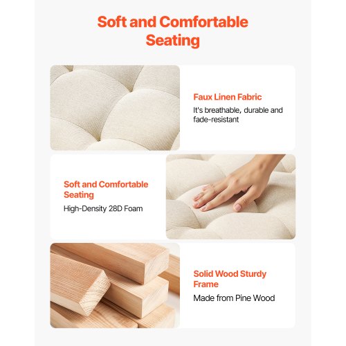 Premium linnetyg: Vårt stora ottomanska soffbord är tillverkat av andningsbart, hudvänligt linnetyg som håller sig sval och bekvämt. Det är slitstarkt, slitstarkt och blekningsbeständigt, perfekt för användning året runt.