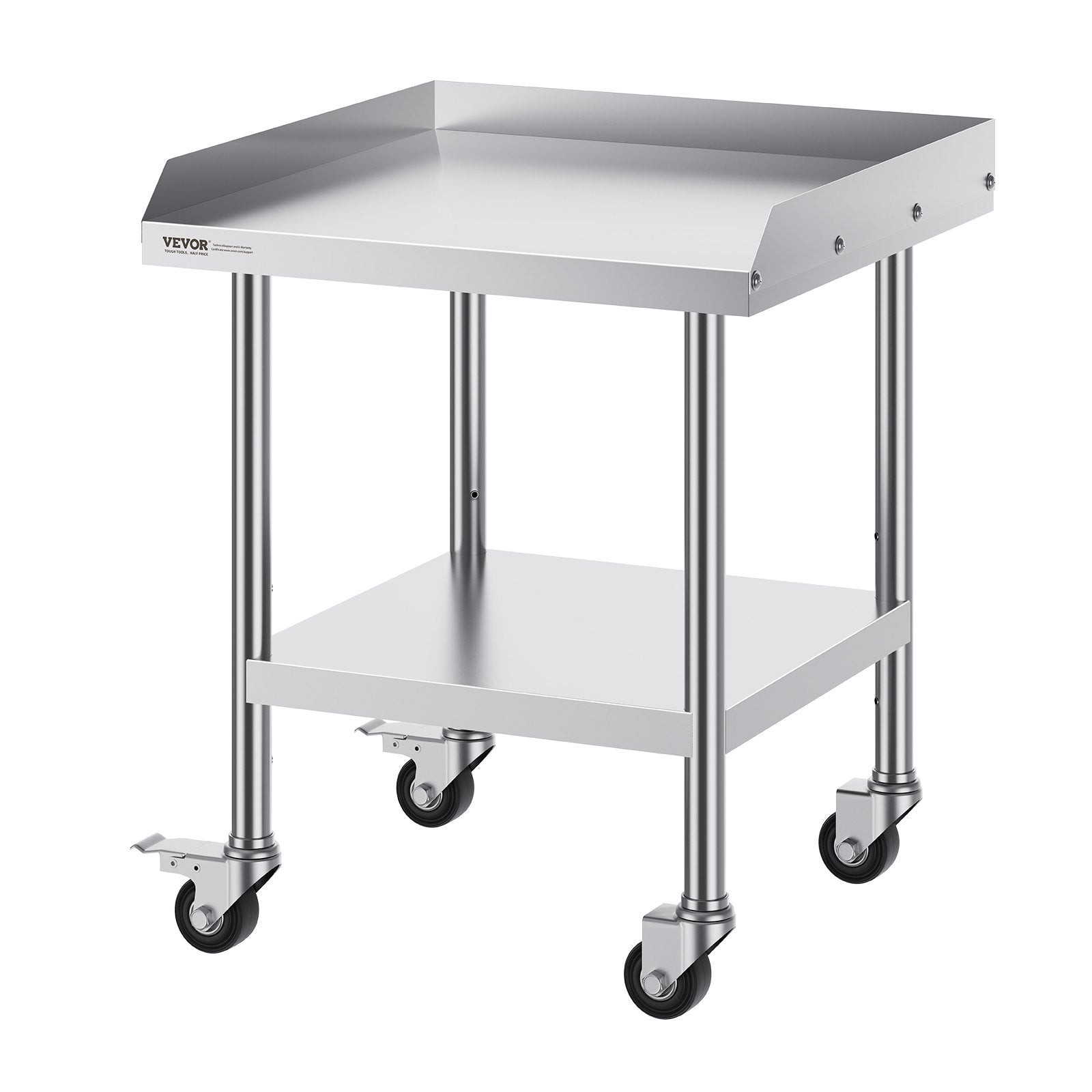 User-friendly design: With 3-level adjustable shelves, this workbench offers the most user-friendly and practical functionality. Simply adjust the shelf height with screws to accommodate items of different sizes. Equipped with 4 swivel casters, including 2 with brakes, the table remains stable and can be easily moved to any location. The 2-inch backsplash prevents valuable equipment and accessories from sliding off the table and also protects against water splashes.