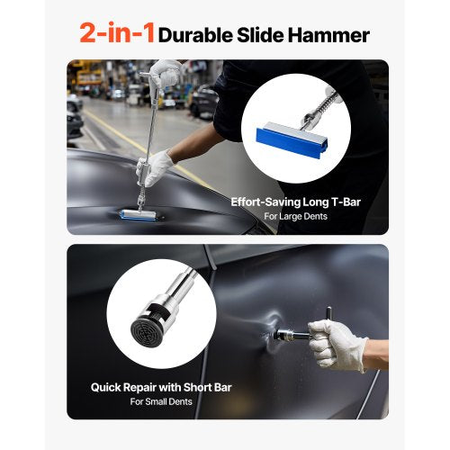 Enkel djup bucklareparation: 2-i-1-dragstången i detta lackfria bucklareparationskit kan omvandlas till en lång T-stång med en glidhammare, vilket ger dig stark dragkraft med mindre ansträngning. Den inkluderar tre kraftfulla sugkoppar för att laga stora bucklor utan lim.