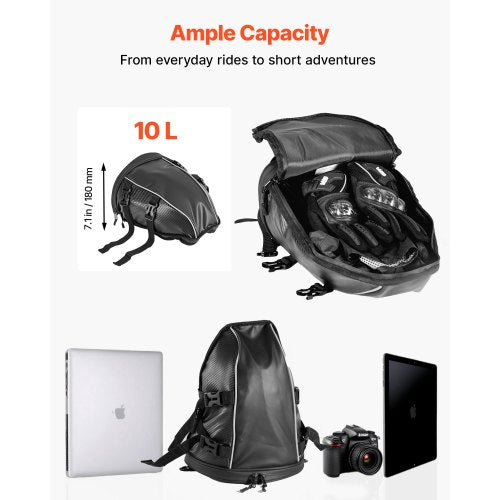 Motorcykel Baksätesväska, 10 L Motorcykel Baksätesväska med Vattentätt Regnskydd, Utomhussport Motorcykel Bagageförvaring Bagagehylla Ryggsäck Handväska med Axelrem och Innerficka, Svart | EU