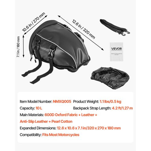 Praktisk design: Motorcykelns bakväska har reflexer för att förbättra synligheten och säkerheten i mörkret. Den vattentäta dragkedjan av högsta kvalitet säkerställer smidig användning utan vattenläckage.