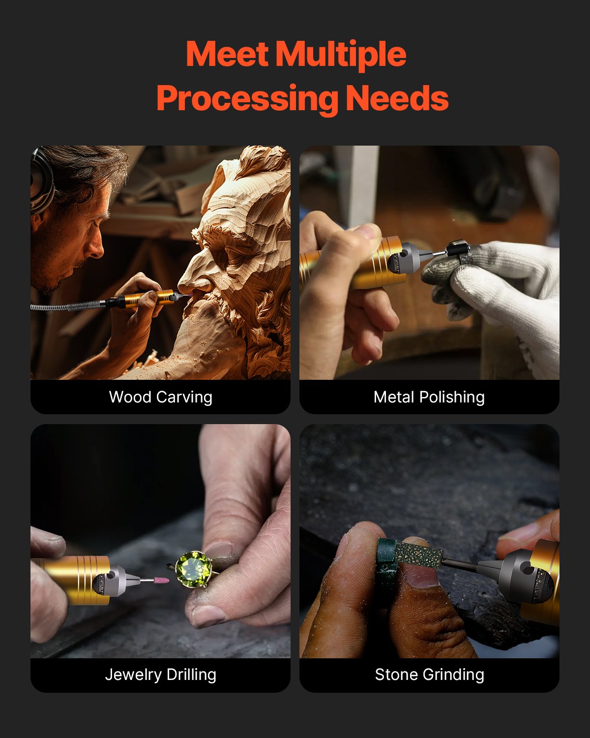 Powerful Motor: Equipped with a robust 1200W copper motor, this flex shaft sander reaches an impressive 30,000 rpm. Its stable performance ensures that you can complete machining tasks with ease and speed - perfect for cutting, polishing, drilling and buffing.