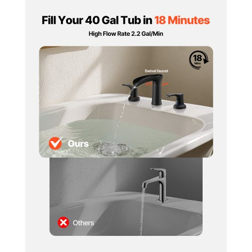 Snabbfyllningskran: Med ett flöde på 4,36 gallon/min fyller denna romerska badkarskran ditt 40-gallons badkar på bara 18 minuter, vilket ger en snabb och effektiv vattenpåfyllningsupplevelse. Njut av snabb åtkomst till ditt badkar, vilket sparar tid och säkerställer en smidig och avkopplande badstund.