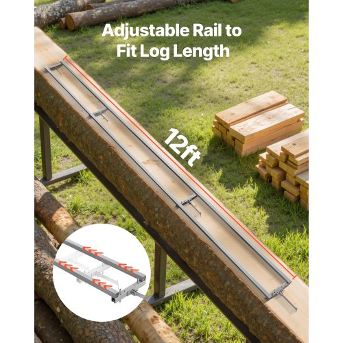 Skenstyrningssystem, 3,66 m 4 tvärstänger kedjesågssatser, sågrälssystem i aluminium som fungerar med motorsåg, 2 kilar, justerbart skenstyrningssystem för byggare och träarbetare | EU