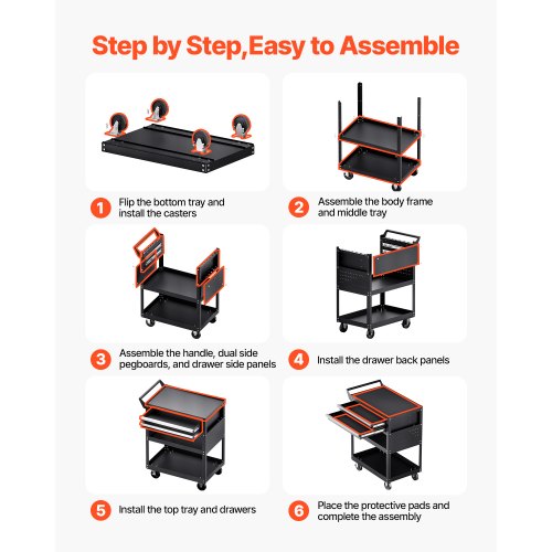 Easy Assembly: Quick to assemble with clear instructions, this work cart is ideal for DIY enthusiasts or as a gift for anyone who loves working with tools!