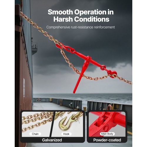 Compatible and adaptable: Our ratchet shackle fits 3/8-inch to 1/2-inch chains with adjustable hooks from 22-31.9 inches. This chain is ideal for trucks, cranes and pickups, and is perfect for securing timber, transporting equipment and lashing.