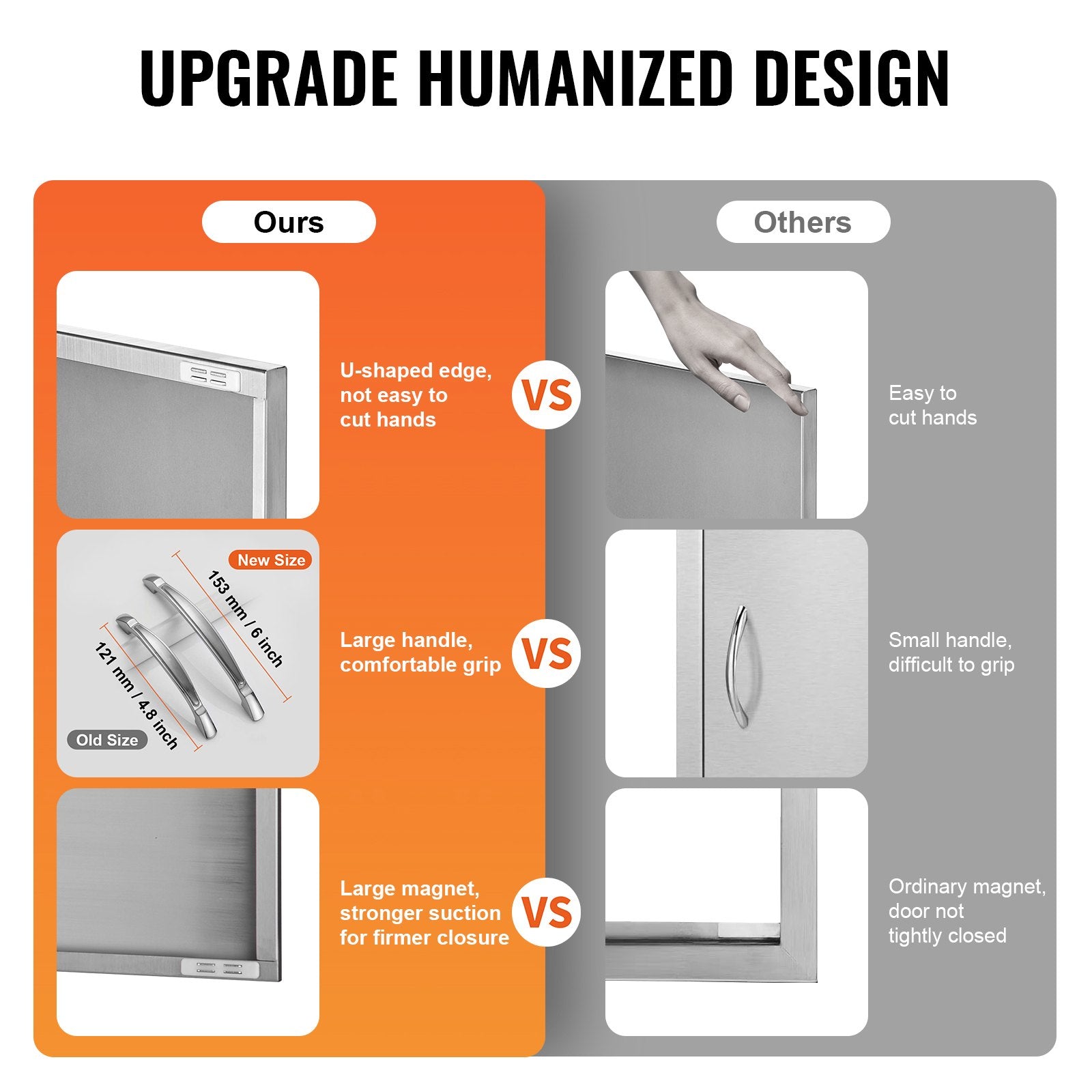BBQ access door, 685x508mm single outdoor kitchen door, stainless steel recessed door, vertical wall door with handle, for BBQ Island, grill station, outdoor cabinet