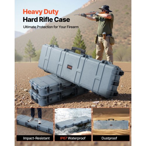 IP67 Vattentät och dammtät: Detta hårda gevärsfodral har en robust, slagtålig yta med IP67 vattentät och dammtät skydd, vilket garanterar en helt förseglad design som håller vatten ute. Det skyddar dina skjutvapen mot hårda väderförhållanden.