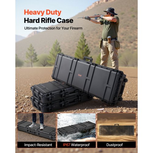 IP67 Vattentät och dammtät: Detta hårda gevärsfodral har en robust, slagtålig yta med IP67 vattentät och dammtät skydd, vilket garanterar en helt förseglad design som håller vatten ute. Det skyddar dina skjutvapen mot hårda väderförhållanden.