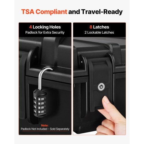 TSA-kompatibel: Uppfyller TSA-standarder och är lämplig för resor med flygplan, tåg och andra transportmedel. Utrustad med flera spärrar kan du även lägga till hänglås i de inbyggda låshålen för extra säkerhet (Obs: hänglås ingår ej)