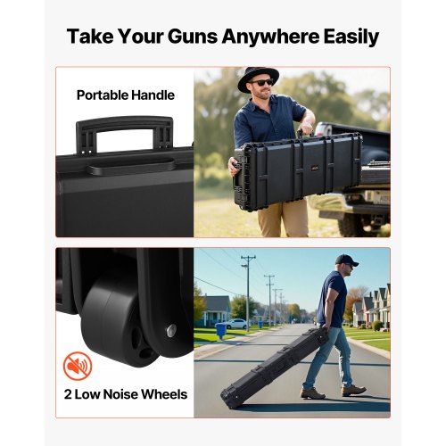 Bärbar och enkel att flytta: Utrustad med två tysta hjul kan denna hårda vapenväska enkelt transporteras i offentliga utrymmen, vilket minimerar störningar. Flera ergonomiska handtag gör det enkelt att lyfta och bära, vilket ger maximal flexibilitet och bekvämlighet.