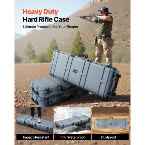 IP67 Vattentät och dammtät: Detta hårda gevärsfodral har en robust, slagtålig yta med IP67 vattentät och dammtät skydd, vilket garanterar en helt förseglad design som håller vatten ute. Det skyddar dina skjutvapen mot hårda väderförhållanden.