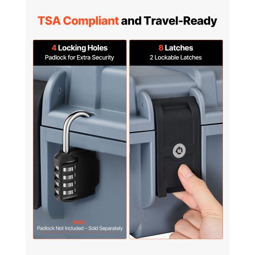 TSA-kompatibel: Uppfyller TSA-standarder och är lämplig för resor med flygplan, tåg och andra transportmedel. Utrustad med flera spärrar kan du även lägga till hänglås i de inbyggda låshålen för extra säkerhet (Obs: hänglås ingår ej)