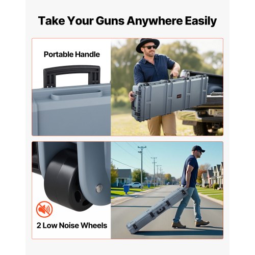 Bärbar och enkel att flytta: Utrustad med två tysta hjul kan denna hårda vapenväska enkelt transporteras i offentliga utrymmen, vilket minimerar störningar. Flera ergonomiska handtag gör det enkelt att lyfta och bära, vilket ger maximal flexibilitet och bekvämlighet.