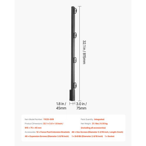 Easy installation kit included: The barbed wire arm extender comes with hex screws, expansion bolts, socket and a 2.6/16" drill bit. Hex screws are ideal for wooden fences, while expansion bolts are suitable for concrete or brick walls.
