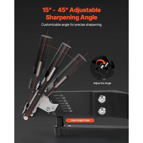 15° - 45° Adjustable Angle: The adjustment knob and clear angle scale allow you to easily set the sharpening angle from 15° to 45°, providing precise knife sharpening with customizable angles for optimal cutting performance.