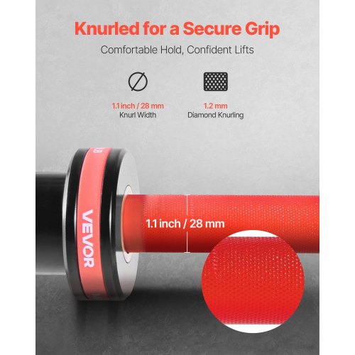 Räfflat halkfritt grepp: Handtaget har en ergonomisk diameter på 28 mm med 1,2 mm djup diamanträffling för förbättrad friktion och ett fast grepp. Detta förhindrar glidning under träning samtidigt som det fördelar trycket på handled och underarm, minskar trötthet och förbättrar stabiliteten. Det säkerställer säkrare och bekvämare prestanda vid högintensiva träningspass.