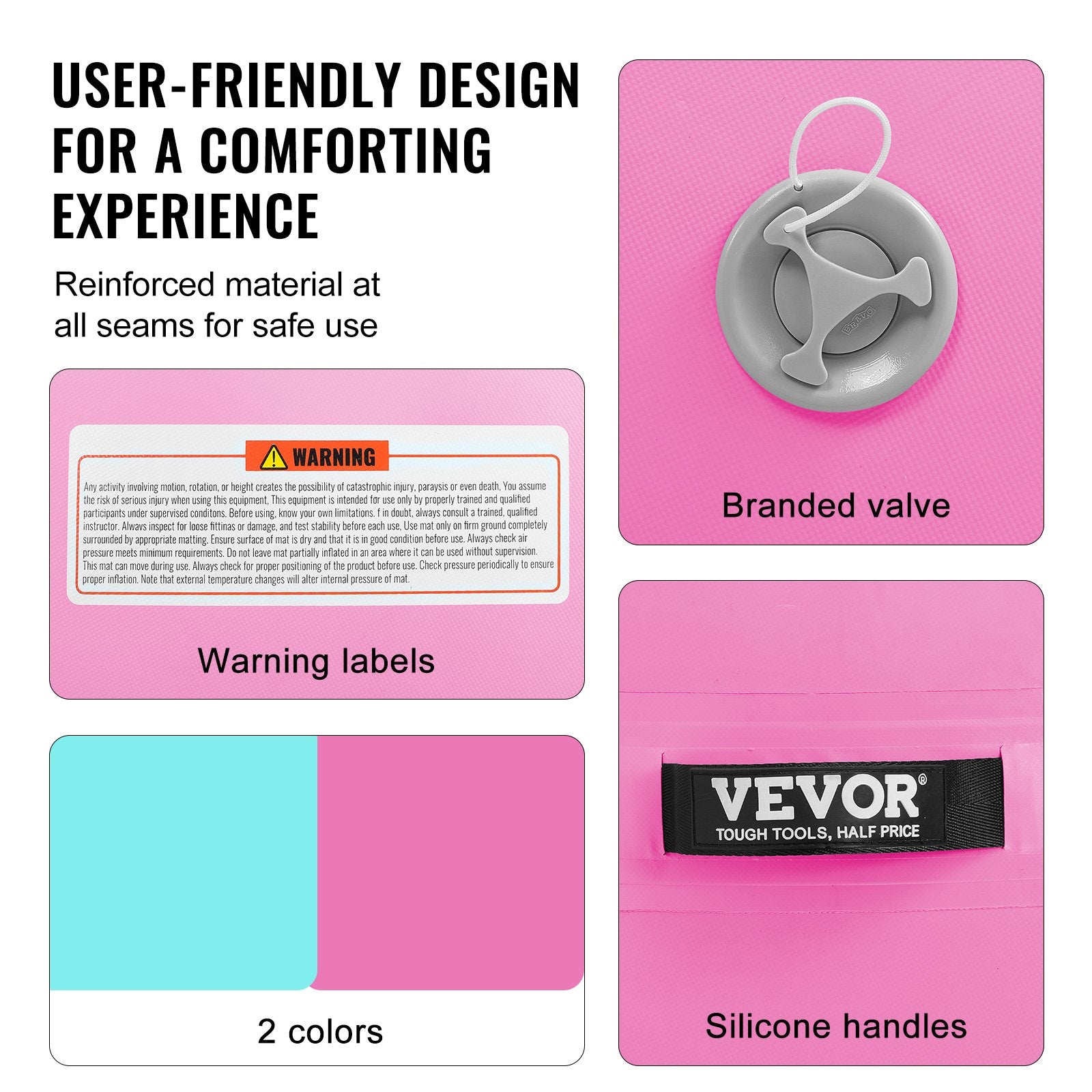 Easy to Inflate and Deflate: The gymnastics training springboard includes a 600W electric air pump, with 3 nozzles and a hose. The maximum pressure is 3.2 PSI. Inflation or deflation can be completed in just 60 seconds, and the mat maintains its pressure for several days without deflating, making it easy to use.