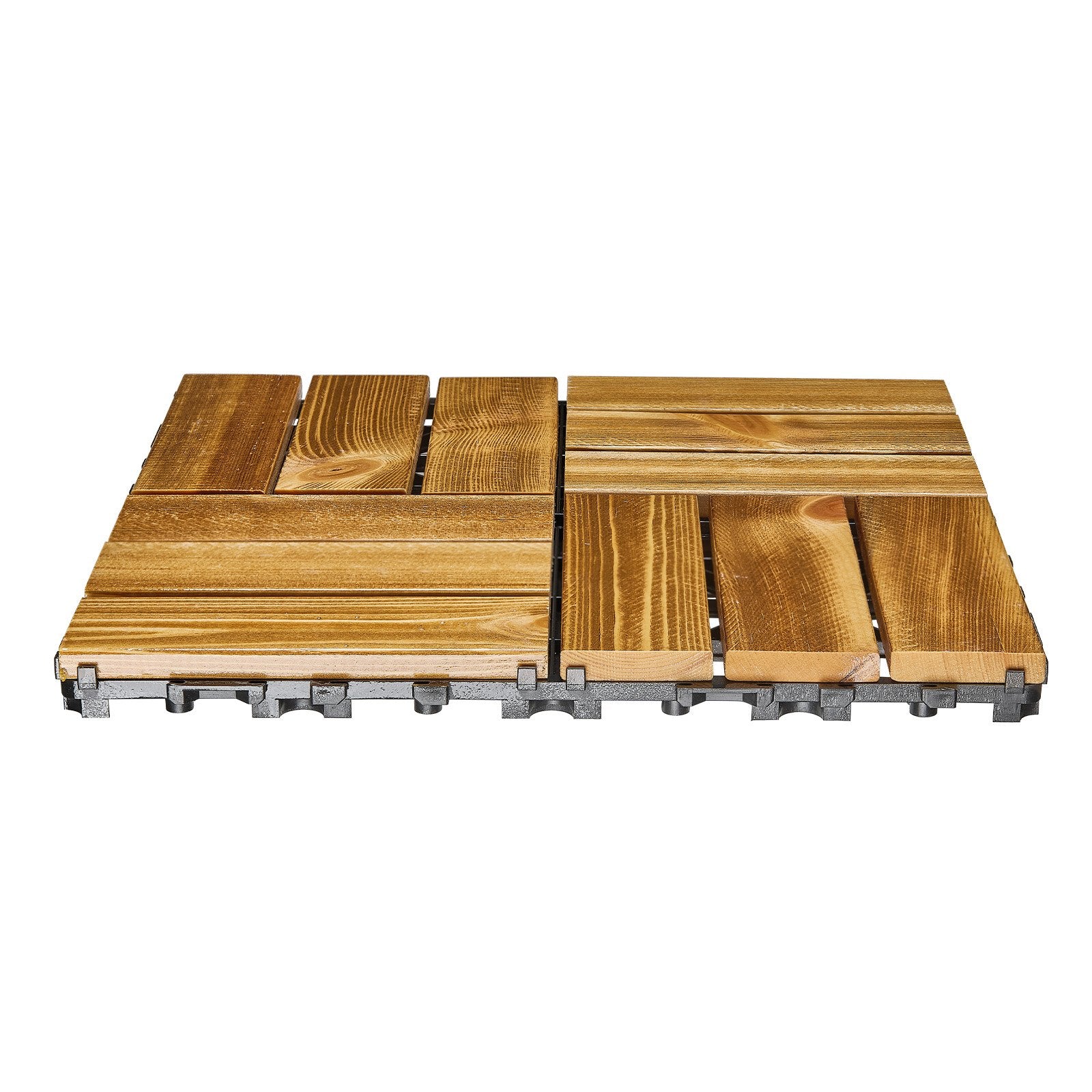 Interlocking Decking Panels Solid Wood 10-Pack 12"x12" Camphor Pine for Porch