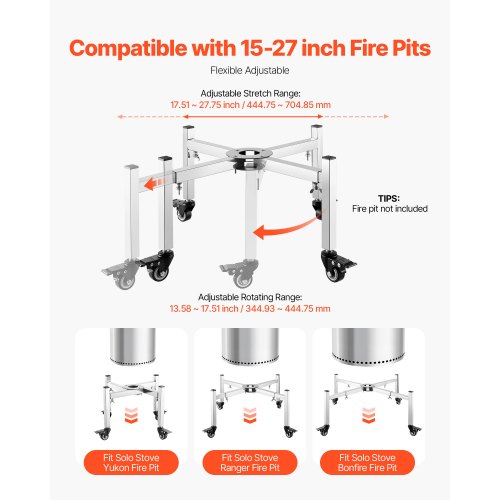 Precise fit: Designed for fire pits 15-27 inches (38-68.6 cm). Adjustable range: 17.5-27.7 inches (44.5-70.5 cm) and rotating range: 13.5-17.5 inches (34.5-44.5 cm). Stable support, compatible with popular brands for a smoother outdoor experience.