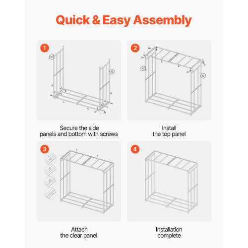 Rymlig förvaringskapacitet: Detta vedställ rymmer ungefär 3/8 vedsträngar, vilket ger gott om plats för uppvärmning i hemmet, eldstäder i trädgården eller campingtillbehör. Det är utformat för bekvämlighet och håller veden snyggt organiserade och lättåtkomliga.