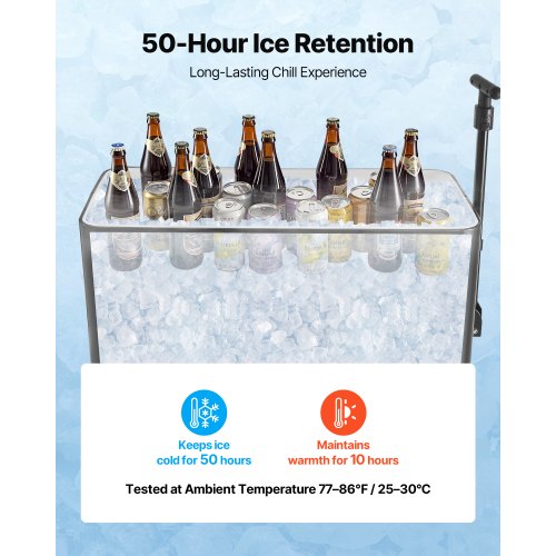 Långvarig kylning: Vår kylvagn har en innervägg av PP med PU-skumisolering, vilket håller varor kalla i upp till 50 timmar och varma i 10 timmar utan ström. Njut av uppfriskande drycker hela dagen under utomhusevenemang.