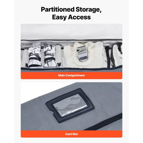 Hållbar konstruktion: Tillverkad av slitstarkt 600D vattentätt Oxford-tyg med förstärkta dragkedjor och vadderade axelremmar, är vår snowboardväska för flygresor byggd för att skydda din utrustning genom otaliga äventyr.