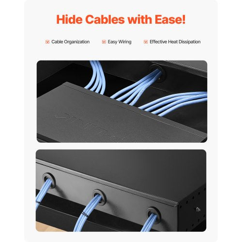 Effektiv kabeldragning: Tre kabelhanteringshål gör det enkelt att organisera kablarna. Denna rackmonterade låda håller kablarna prydliga, dolda och ditt utrymme ser professionellt ut.