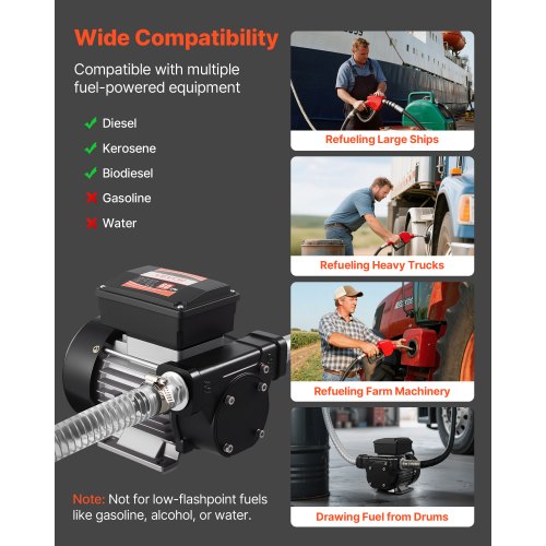 Bred dieselkompatibilitet: Utformad för diesel, fotogen och biodiesel. Denna dieselbränsleöverföringspump stöder olika dieseldrivna utrustningar som lastbilar, grävmaskiner, traktorer, jordbruksmaskiner, generatorer med mera (ej för användning med bensin)