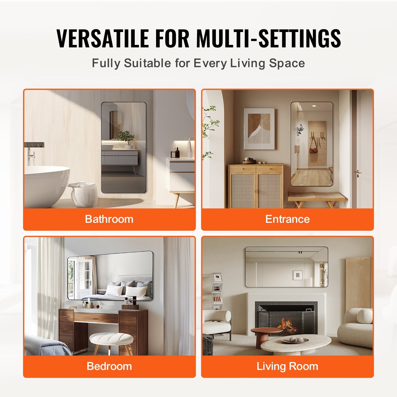 Flexible installation for any room: This mirror can be easily installed in bathrooms, hallways, living rooms or bedrooms and blends seamlessly with various interior styles. Its adaptable design allows it to fit comfortably into different layouts.
