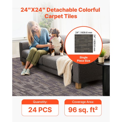 Mattplattor Återanvändbara 610x610 mm, 24 ST Modulär Matta Fyrkantig Matta, Kommersiell Golv Mjuk Vaddering För Sömlöst Överdrag 8,9㎡, Enkelt Gör-det-själv-Ersättning För Vardagsrum Sovrum Inomhus, Grå & Brun | EU