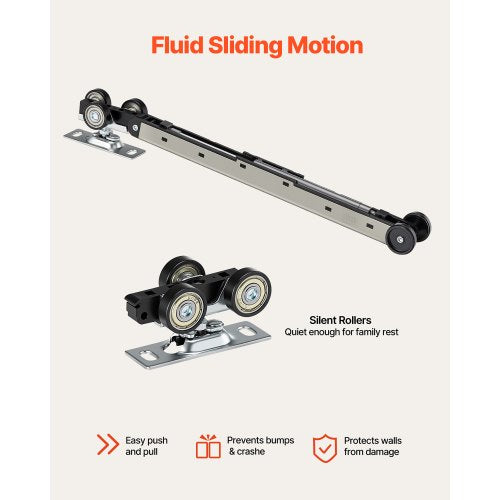 Tyst och smidig glidning: Utrustad med över 100 000 rulltestade lager, högkvalitativ stålbeslag, trehjuliga upphängningar, slitstarka dörrstyrningar och skena, glider vår fickdörr tyst och smidigt. Lätt att trycka och dra, förhindrar stötar och kraschar samtidigt som den skyddar väggarna från skador.