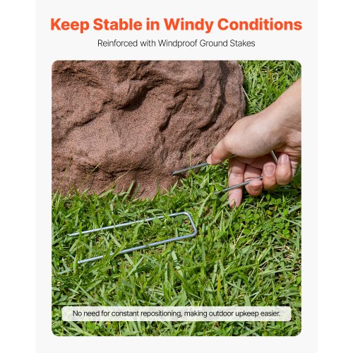 Vindtålig och stabil design: Våra konstgjorda stenskydd har hål i botten och inkluderar metallpinnar för enkel fixering på gräs eller jord. Denna design undviker vindinducerad förskjutning och installationen kräver inga verktyg. Lämplig för gårdar och uteplatser