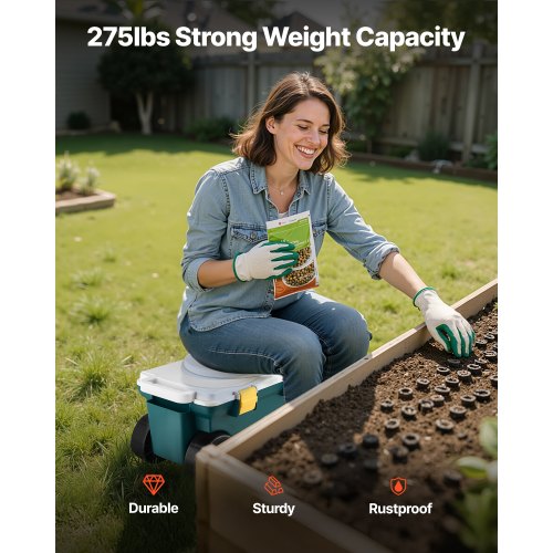 Easy to maneuver: Equipped with sturdy large wheels and built-in handles, this rolling garden stool with storage easily navigates tall grass, rocky terrain, and garden obstacles. Its easy handling makes it perfect for both children and adults, providing easy mobility wherever you go.