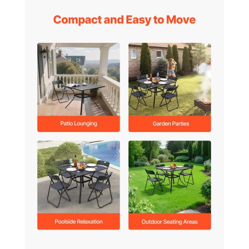 Rost- och väderbeständig: Bordsskivan är tillverkad av galvaniserat kolstål och har en hållbar bordsskiva som tål tuffa utomhusförhållanden. Torka bara bort fett eller spill med en fuktig trasa – inget särskilt underhåll krävs.