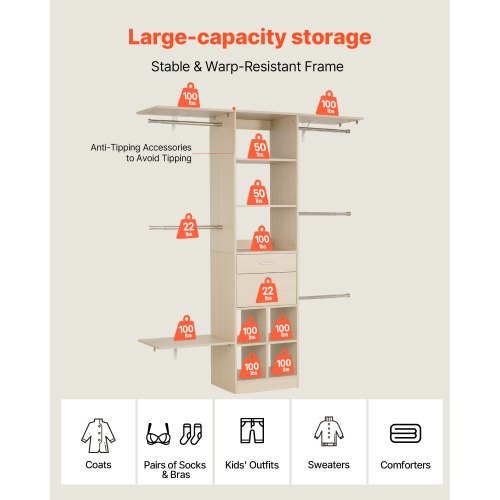 Stor kapacitet: Detta garderobssystem med lådor klarar upp till 362,7 kg och rymmer cirka 100 plagg. Använd facken för att separera föremål snyggt, så att allt är synligt och lättåtkomligt.